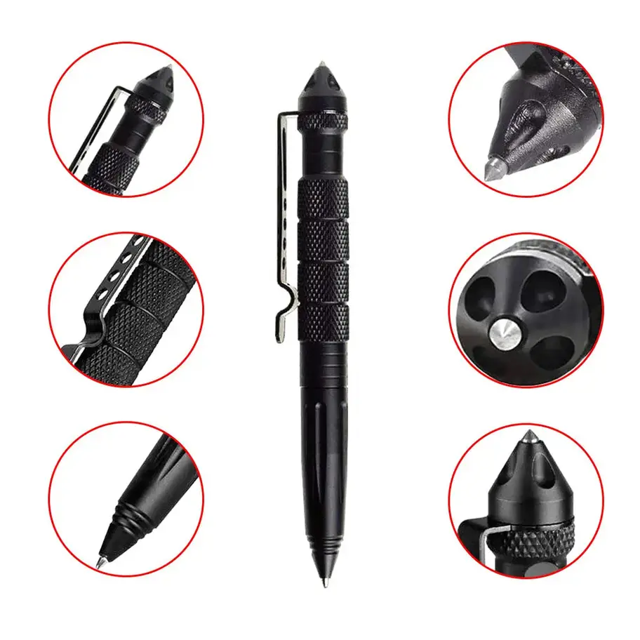 This high-quality tactical pen is designed for both self-defense and practical outdoor use. Built with durable aircraft-grade aluminum, it ensures toughness while maintaining a lightweight feel, making it an essential tool for camping, hiking, and everyday carry. Whether you need to break glass in an emergency or fend off an attacker, this pen's multifunctional design provides you with peace of mind and readiness for any situation. Its sleek, ergonomic structure allows for comfortable grip and easy carrying, fitting easily in your pocket, bag, or survival kit.